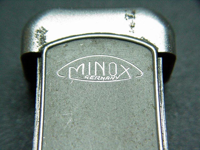 You can see that the engraving does not have the "VEF" logo on it nor the word "Riga". There is no "Patented" engraving or any other marking on the bottom of this camera...just the Minox logo with the word "Germany" apparently hand engraved under it. Here's what Minox guru and all around good guy Don Goldberg of DAG camera repair had to say about it, "When Minox started in Wetzlar they had a bunch of Riga Minox Parts & made up around 20 of them & engraved (I think by hand) Made in Germany. The lst German to work at Minox in Germany was working at Leitz,USA when I was there & told me this".